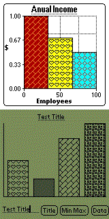 The Bar Charting extension is designed to provide the easy creation of fast, dynamic bar charts. The extension is fast since it is written in C using PalmOS graphics APIs. The extension is easy because it plugs straight into Satellite Forms. The borders, fill pattern, colours, chart title, axis titles, grid lines, markers and axis minimums/maximums are all configurable and can be altered dynamically. Data can also be added and removed dynamically which means that you have the option of utilising Satellite Forms variables or fields from tables.